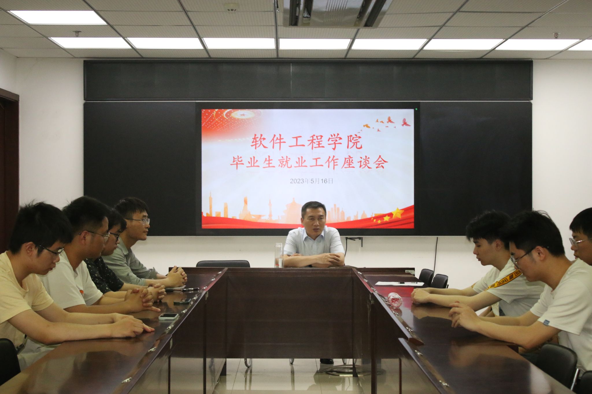 下午2点,学院在科技楼2号楼423会议室召开毕业生代表座谈会。座谈会上徐志国详细了解了毕业生的就业情况和考研情况,询问毕业生的未来规划,对同学们给予深切寄语。毕业生代表分别讲述了他们的目前情况和困惑点,徐志国认真回答了他们提出的问题,期望同学们能够找准定位,厚积薄发,希望大家毕业后无论就业还是继续深造都能有好的发展,有空常回母校看看。