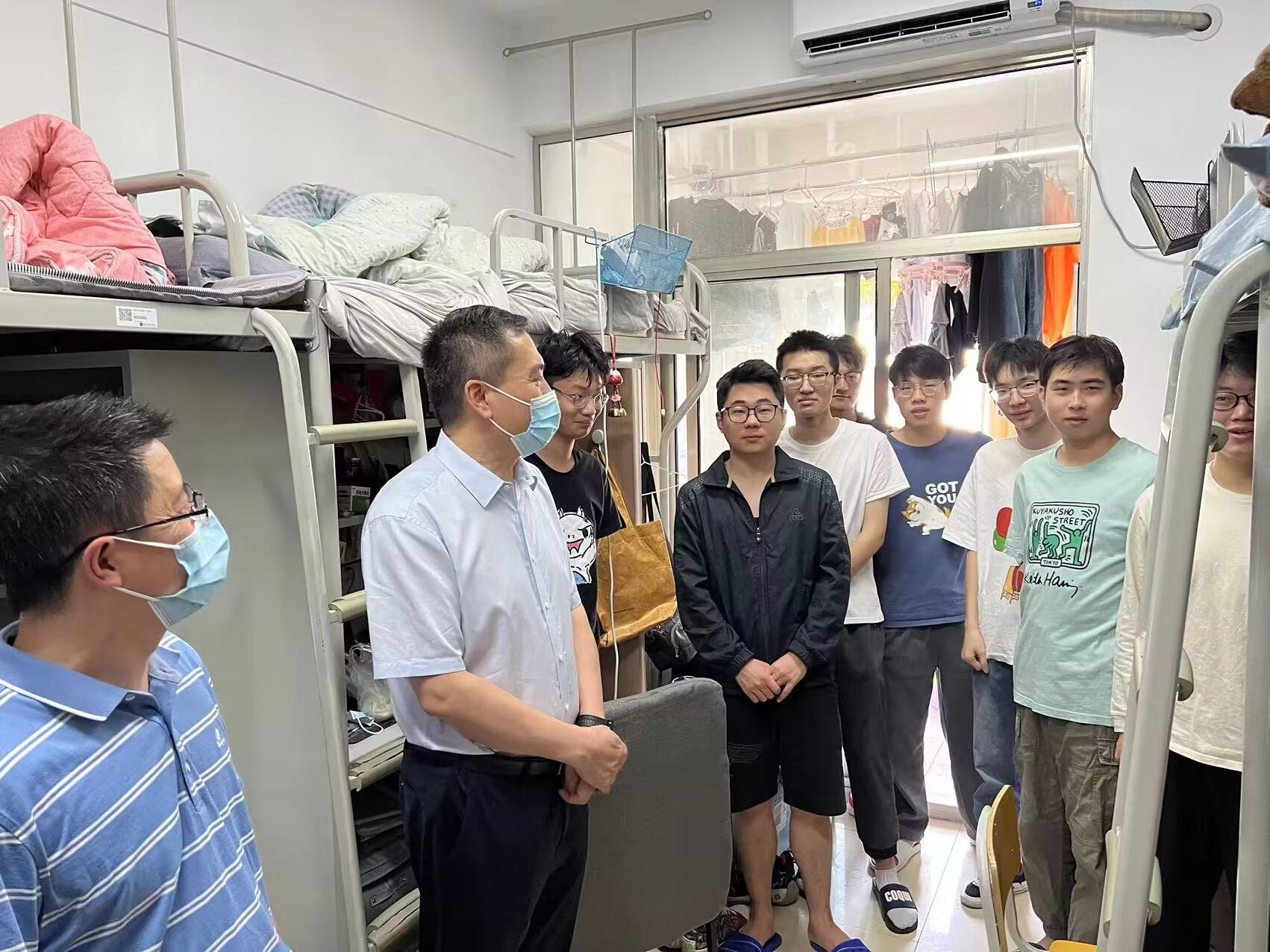 5月16日上午,软件公司党委书记徐志国、副书记徐斌深入2023届毕业生宿舍,了解即将离开母校的员工目前在校情况,为毕业生送上亲切的问候与诚挚的祝福。毕业班辅导员和班主任陪同走访。